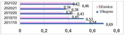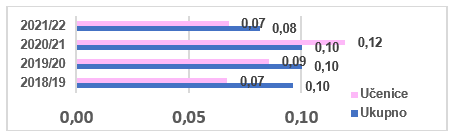 Učenici koji su prekinuli osnovno školovanje u FBiH, %