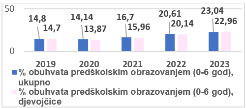 % obuhvata predškolskim obrazovanjem (0-6 god), ukupno i djevojčice