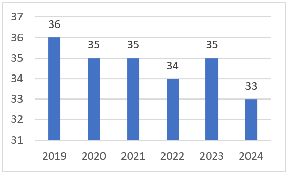 Indeks percepcije korupcije je manji u odnosu na prošlu godinu, a u zadnjih šest godina bilježi smanjenje vrijednosti što ukazuje na negativan trend, tj. prisustvo korupcije.