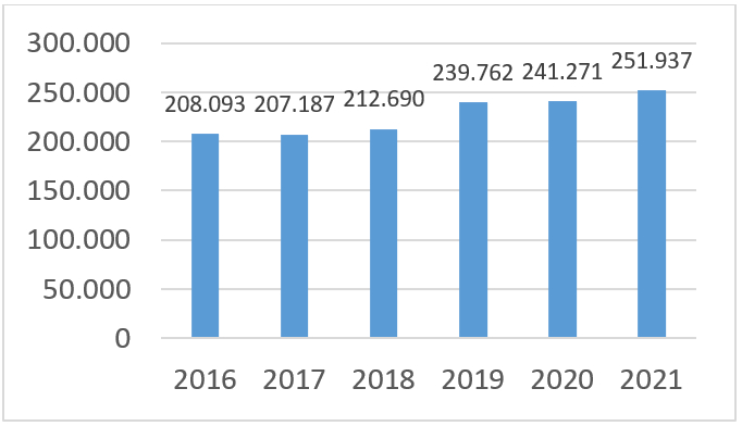 U 2021. godini, broj priključaka na kanalizacionu mrežu iznosio je 251.937, što je u odnosu na 2020. godinu više za 10.666 priključaka ili 4,4%.