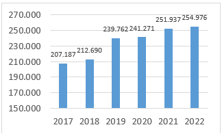 U 2022. godini, broj priključaka na kanalizacionu mrežu iznosio je 254.976, što je u odnosu na 2021. godinu više za 3.039 priključaka ili 1,2%.