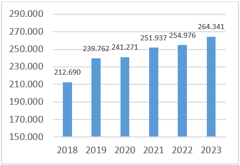 U 2023. godini, broj priključaka na kanalizacionu mrežu iznosio je 264.341, što je u odnosu na 2022. godinu više za 9.365 priključaka ili 3,7%.