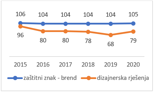 Na rang listi za 2020. godinu po prijavi zaštitnog znaka-brenda BiH zauzima 105. poziciju od 149 zemalja, a po pitanju prijave dizajnerskih rješenja nalazimo se na 79. mjestu od 129 zemalja.