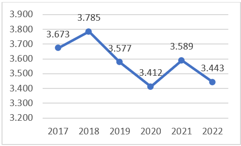 Za praćenje realizacije ove mjere, indikator ukupnog broja aplikacija za zaštitne znakove bilježi pad u 2022. godinu u odnosu na 2021 za 4,1%.