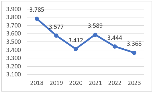 Za praćenje realizacije ove mjere, indikator ukupnog broja aplikacija za zaštitne znakove bilježi pad u 2023. u odnosu na 2022. godinu za 2,2%.