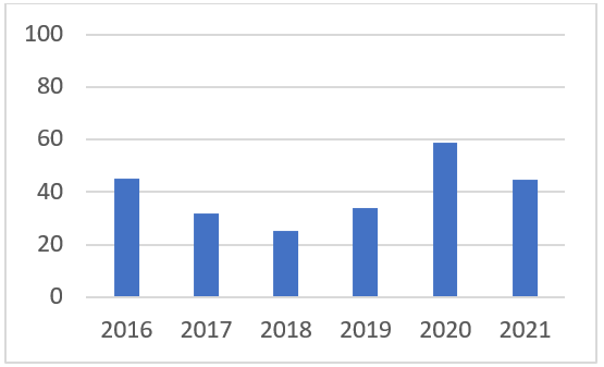 Implementacija Programa javnih investicija (PJI), odnosno udio utrošenih sredstava u odnosu na planirano bilježi nepovoljan trend. U 2021. godini implementirano je 44,7%od planiranog, dok je 2020. godine stepen implementacije iznosio 59%. U periodu 2016.-2021. godine najniži stepen implementacije zabilježen je 2018. godine, a iznosio je tek 25%.