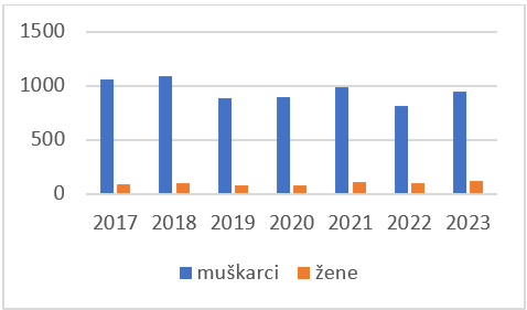 Iako se broj poznatih prijavljenih lica- muškaraca za krivična djela iz oblasti brak, porodica mladež u posmatranom periodu smanjivao u odnosu na polaznu vrijednost (2017), u 2023. je veći za 15,8% u odnosu na prethodnu godinu, broj počinioca žena i dalje raste, i veći je za 25% u odnosu na polaznu vrijednost.