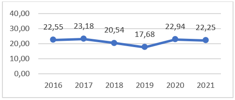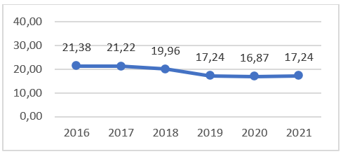 U području Poljoprivrede, šumarstva i ribolova, od 2016. godine bilježi se negativan trend pokrivenosti uvoza izvozom. U 2021. godini pokrivenost uvoza izvozom je nešto veća u odnosu na godinu ranije (17,24%).