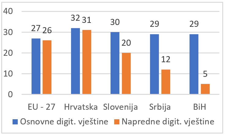 Posmatrajući zemlje u okruženju, možemo zaključiti da su stanovnici BiH u osnovnim vještinama ne zaostaju, dok je kod naprednih digitalnih vještina zaostatak veliki.