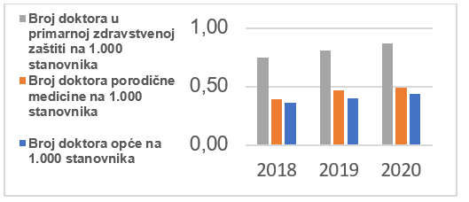 Broj doktora opće, porodične medicine i u primarnoj zdravstvenoj zaštiti, na 1.000 stanovnika