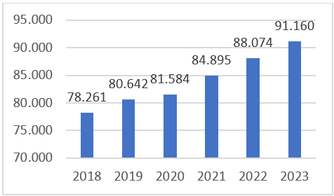 Broj poljoprivrednih gazdinstava iz godine u godinu raste, a 2023. godine je registrovano 91.160 gazdinstava, od čega se 95% odnosi na porodična gazdinstva, a 5% na pravne subjekte i obrte.