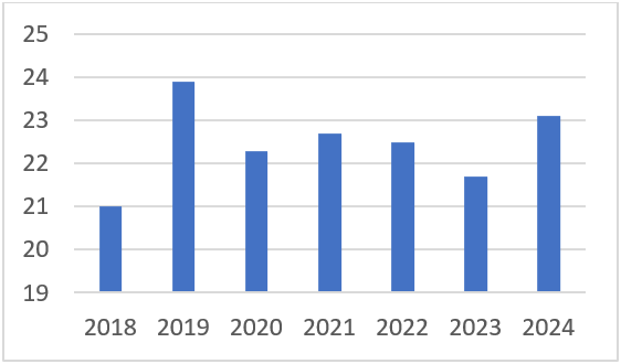 Udio plata zaposlenih u javnoj upravi u ukupnim rashodima, na nivou FBiH, iznosi 23,1%. Dakle porastao je u odnosu na prethodnu godinu (21,7%), kada je bio najbliže polaznoj vrijednosti iz 2018., dok je očekivano kretanje smanjenje ove vrijednosti.