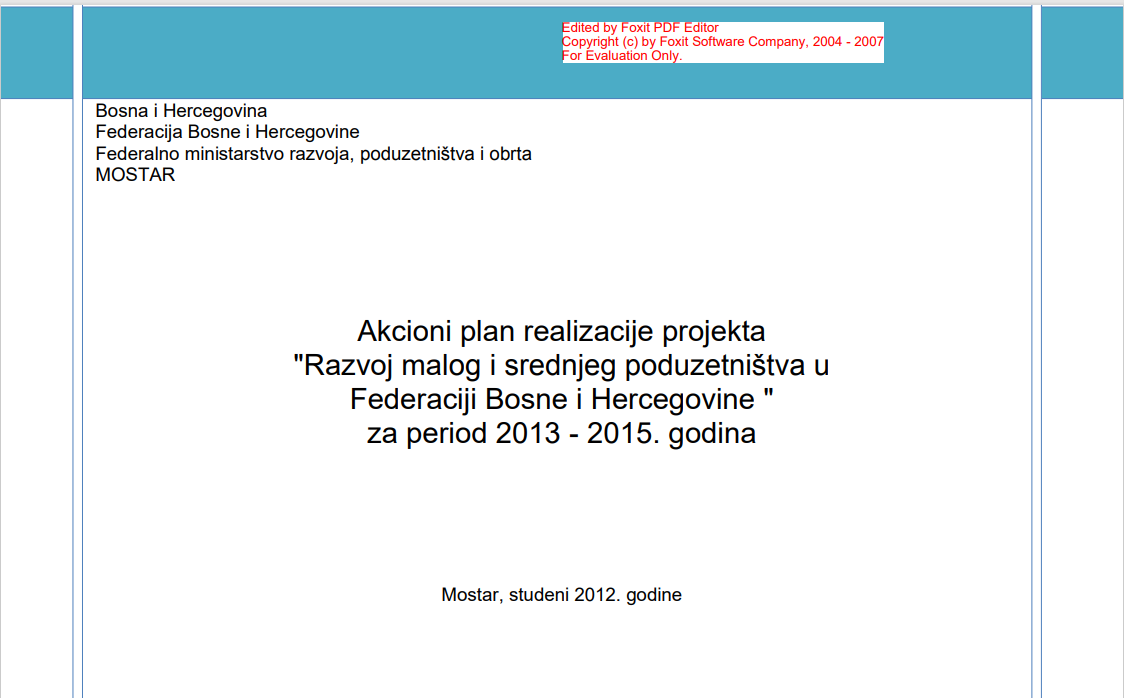 Akcioni plan realizacije Razvoj MSP u FBiH 2013-2015