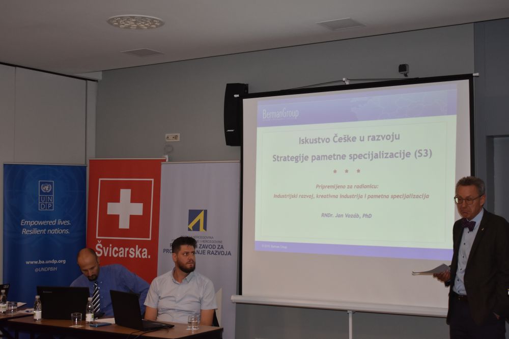 Diskusiju tokom rada je vodio prof. Mesud Ramić potičući predstavnike ključnih aktera iz oblasti industrijskog razvoja, kreativne industrije i pametne specijalizacije (Vlada Federacija BiH, federalna i kantonalna ministarstva, Privredne komore FBiH,...) da prepoznaju osnovne probleme, izazove i potencijale u ovoj oblasti. Gost današnje radionice je bio Jan Vozab, stručnjak iz Češke, koji je predstavio iskustva njegove zemlje u sprovedbi pametne specijalizacije i razvoju industrije.