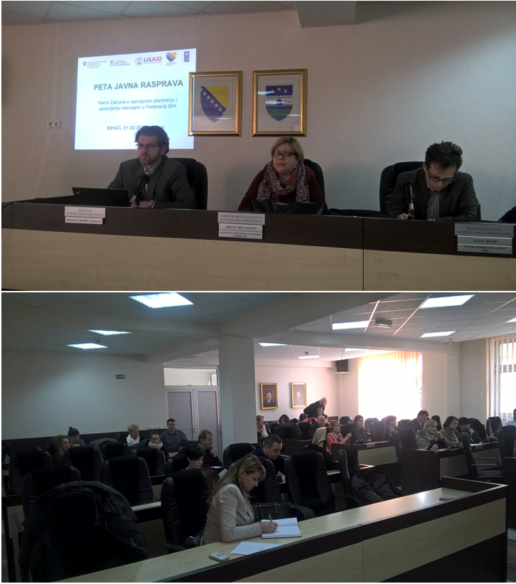 Danas je u prostorijama Skupštine Unsko-sanskog kantona u Bihaću održana peta javna rasprava o Nacrtu zakona o razvojnom planiranju i upravljanju razvojem u Federaciji Bosne i Hercegovine. Kao i u prethodnim javnim raspravama, na početku javne rasprave, svim učesnicima, riječima dobrodošlice, obratili su se organizatori ove javne rasprave. Zatim su predstavljeni procesi izrade procjene uticaja propisa, kao i sam tekst Zakona.
