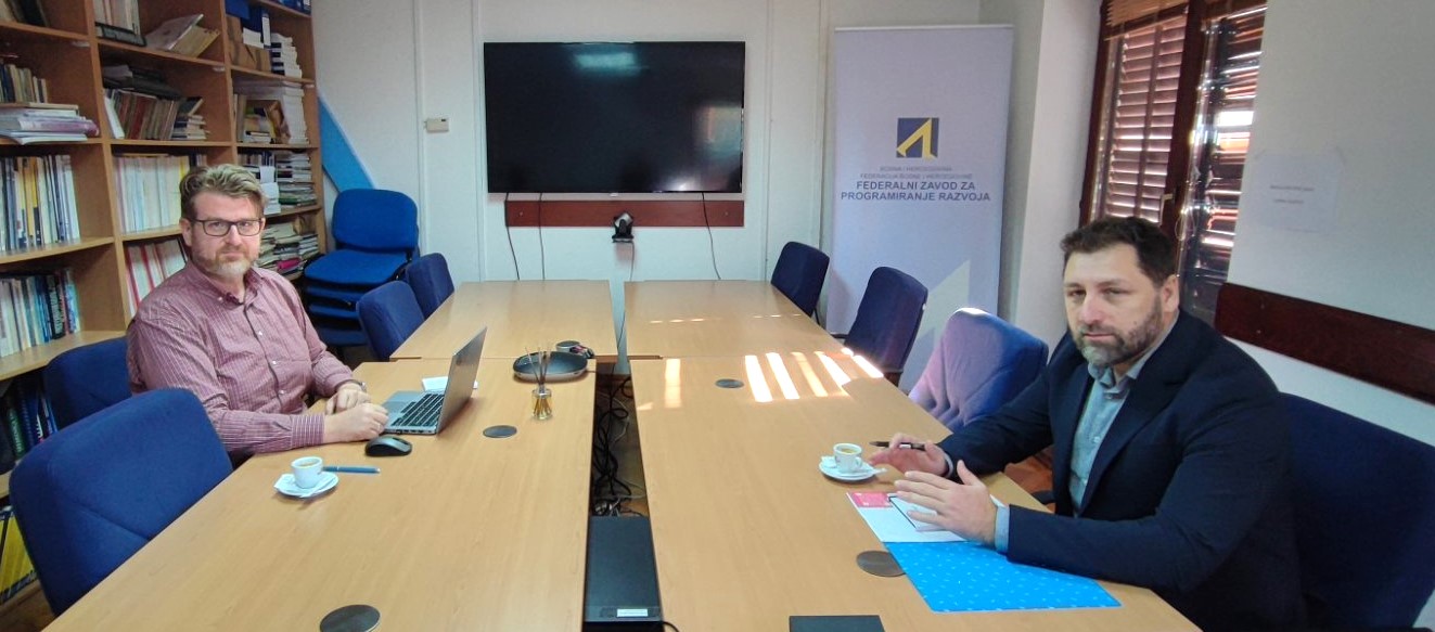 Sarajevo, 01. novembar 2023. - Nijaz Avdukić, vršioc dužnosti direktora Federalnog zavoda za programiranje razvoja, održao je sastanak sa Adisom Salkićem, pomoćnikom ministrice za mlade, Federalnog ministarstva kulture i sporta, vezano za usaglašavanje aktivnosti i obaveza u procesu izrade Strategije za mlade.