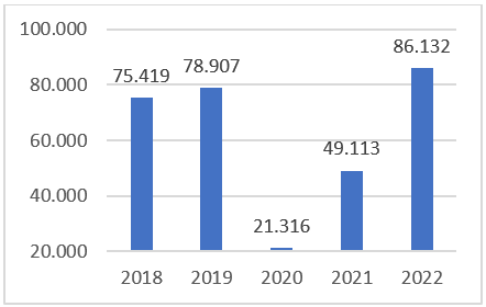 Promet putnika na aerodromima u 2022. godini je veći za 74,7%, u odnosu na prošlu godinu. U istom periodu, promet aviona je veći za 50,8%, a promet tereta manji za 6,3%.