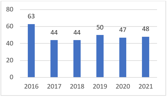Bosna i Hercegovina je u području reda i sigurnosti (faktor 5 indeksa vladavine prava) pala za jedno mjesto u odnosu na prošlu godinu, što znači da je sigurnost osoba i imovine lošija.