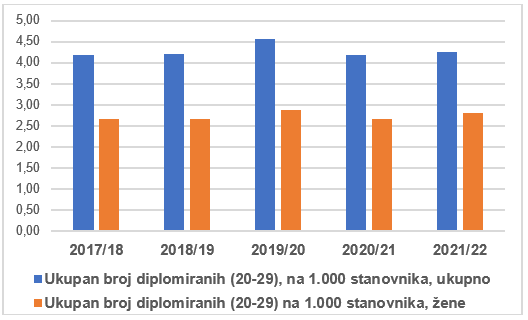 Broj diplomiranih studenata (20-29) na 1.000 stanovnika