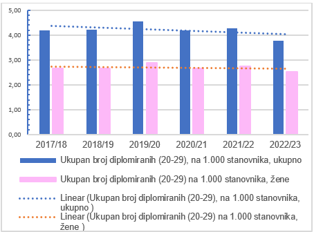 Broj diplomiranih studenata (20-29) na 1.000 stanovnika
